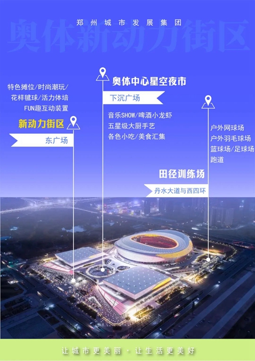 在這座地標(biāo)性運(yùn)動(dòng)主題休閑公園中,以運(yùn)動(dòng)釋放壓力,以美食致敬生活,妝點(diǎn)專屬于鄭州人的鮮活、元?dú)庀娜铡?/span>